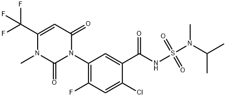 UPAC name:2-chloro-4-fluoro-5-[3-methyl-2,6-dioxo-4-(trifluoromethyl)pyrimidin-1-yl]-N-[methyl(propan-2-yl)sulfamoyl]benzamide